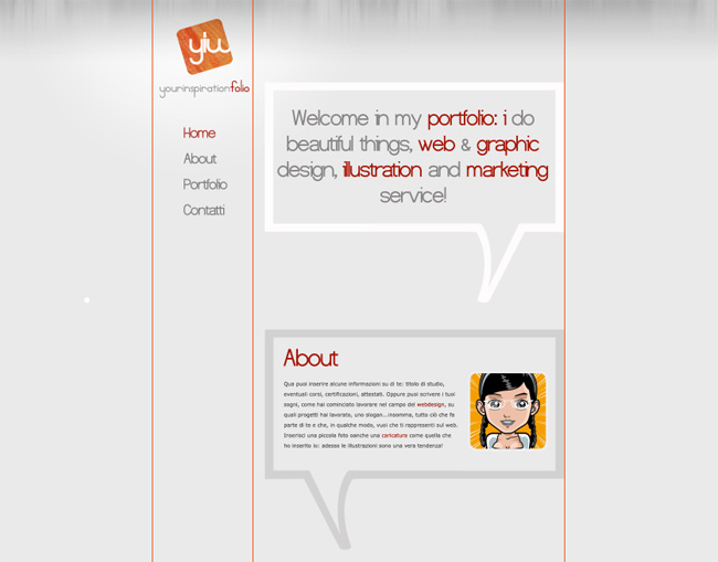 Settimane dopo, eccolo qua. Il primo tema free che noi di YIW ti offriamo è proprio progettato per un portfolio e verrà sviluppato in un’unica pagina xhtml. Un layout semplice da realizzare e personalizzare ma, allo stesso tempo, esteticamente accattivante.