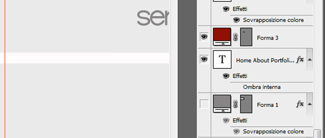 Anche se su Photoshop l’effetto non è esteticamente dei migliori non preoccuparti: grazie ai javascript che integreremo al momento della messa in codice, il sito avrà una resa grafica funzionale e accattivante.