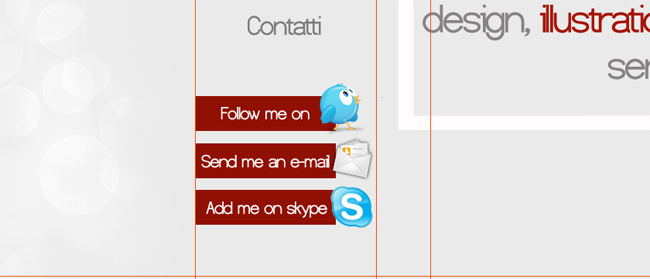 Abbiamo deciso di aggiungere il nostro contatto skype, un pulsante che linki al profilo su twitter e un pulsante che invita l’utente a scriverci una e-mail. Vediamo come integrare tutto questo in modo gradevole e, perché no, colorato.