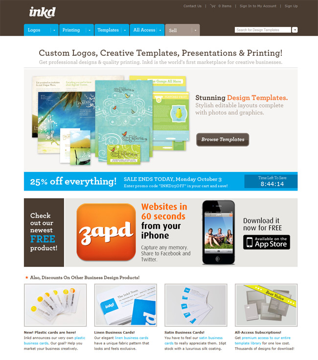 Inkd ha una grafica abbastanza lineare e pulita, una scelta che definirei ottimale in un sito e-commerce, che necessita di un occhio di riguardo particolare per tutto ciò che concerne usabilità e accessibilità. I colori utilizzati sono una scelta eclettica ma che funziona: chi di voi avrebbe scommesso sul binomio azzurro acceso/marrone del menu di navigazione?