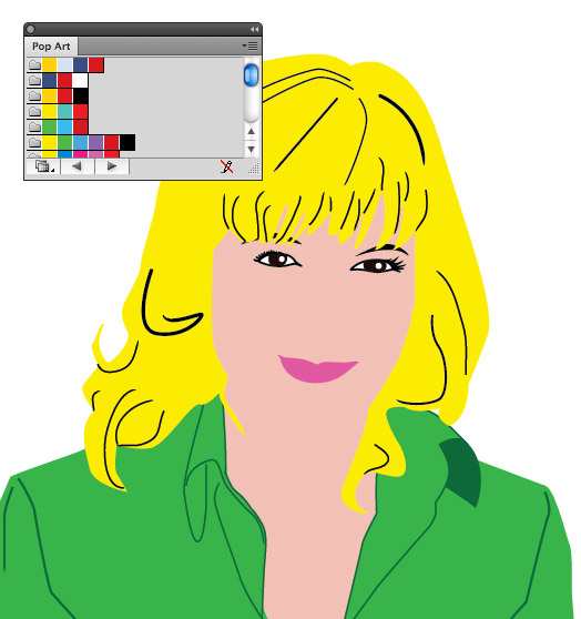 Cancella la foto e colora le varie parti. Come punto di riferimento puoi utilizzare la palette dei colori Pop art che si trova nella “Biblioteca campioni” > “Storia dell’arte”.
