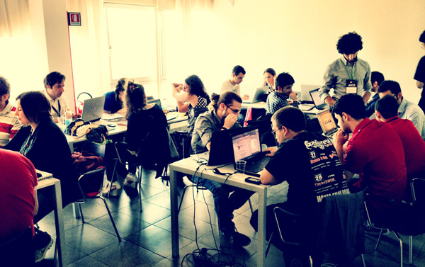 Il team di ArteUva ci chiede informazioni su quello che è il nostro pane quotidiano: grafica e WordPress. Gli diamo qualche dritta, lavoriamo sul design di un buon logo e buttiamo giù qualche idea per un eventuale sito web. Dopo mezz’ora siamo ad un altro tavolo, con un altro team: cerchiamo qualche spunto per dare un’impronta “social” al progetto dei ragazzi di GDG Bottle: il progetto è ambizioso ma interessante, e le idee non mancano.