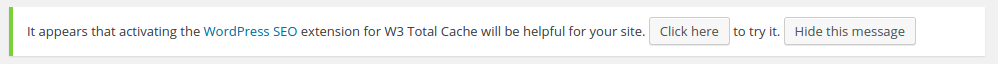 Se utilizzate una sitemap xml, inserite nel relativo campo con label “Sitemap URL:” l’indirizzo della vostra sitemap. Potete inserirlo come url assoluto tipo https://www.dominio.it/sitemap.xml o come path relativo come /sitemap.xml. Se utilizzate il famoso plugin WordPress SEO by Yoast questo passaggio viene automaticamente applicato grazie all’estensione presente in W3TC e l’effetto sarà di aver il campo pre-compilato con il valore /sitemap_index.xml. Se è questo il caso, probabilmente avrete già notato un messaggio di W3TC che vi invita ad attivare l’estensione per il plugin di Yoast. Questo quello che appare: